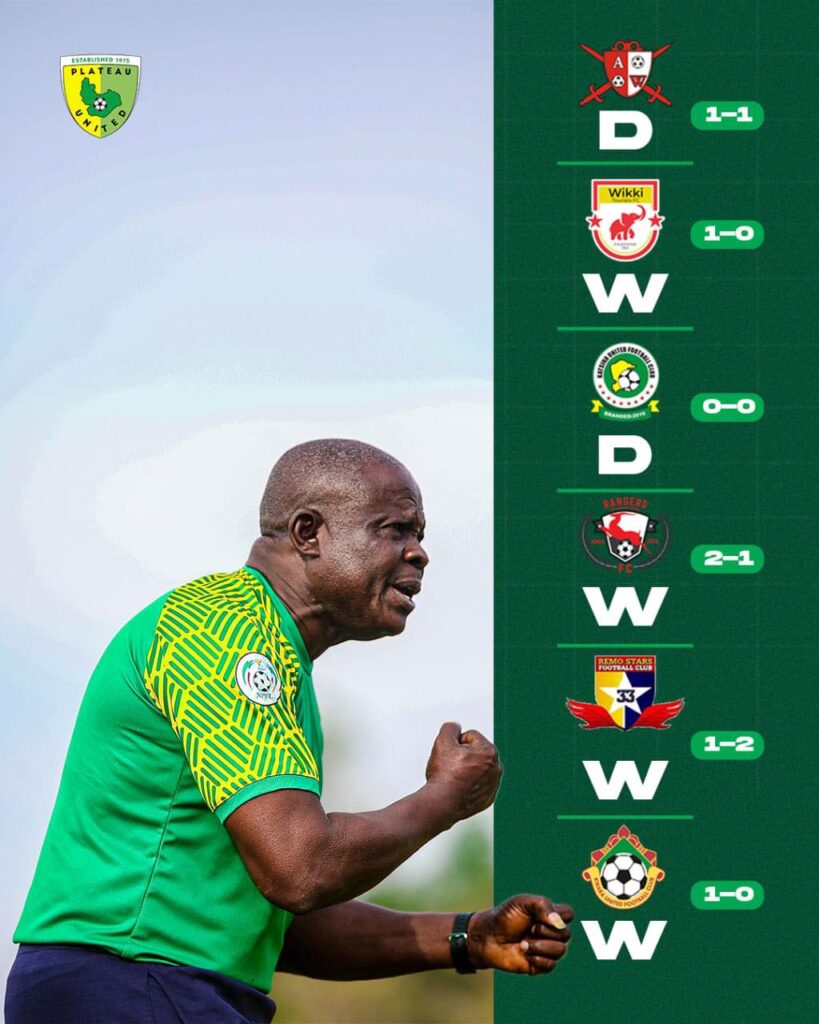 Let’s start by pointing out these facts. Plateau United FC have just played six matches recently and haven’t tasted defeat. That’s a serious achievement in the NPFL, where fixtures can be unpredictable and away games often feel like survival missions.
